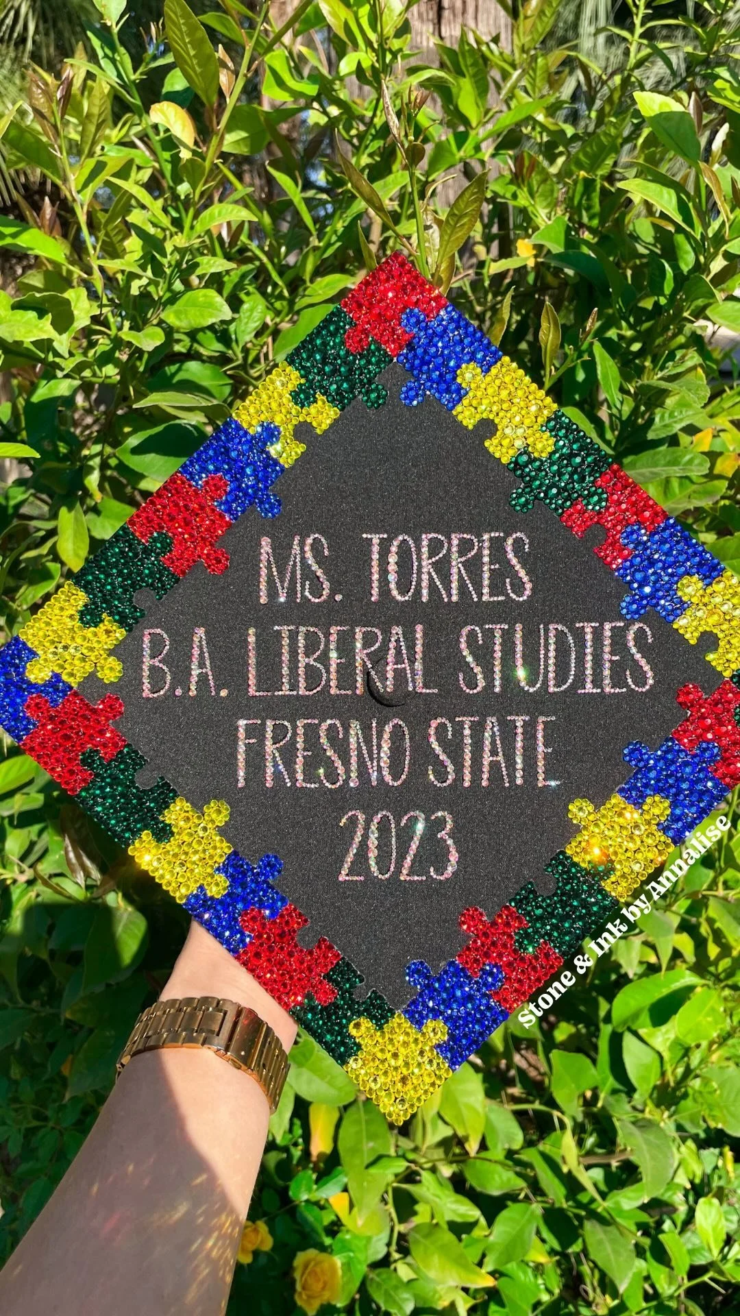 Custom rhinestoning for grad caps, dancewear, team gear & more.